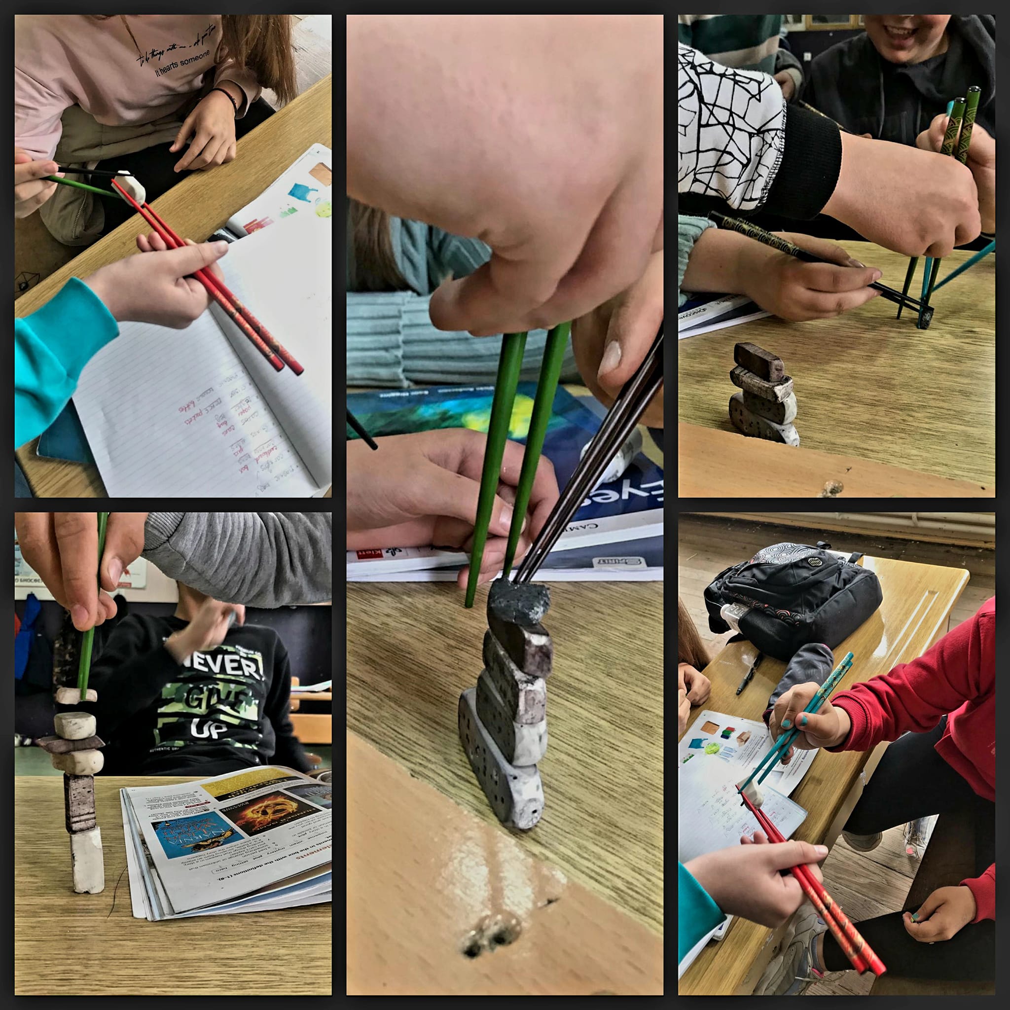 Деца старијих разреда наше школе су на забаван начин увежбавали фину моторику, координацију око - рука и концентрацију - учили су да рукују штапићима за јело.