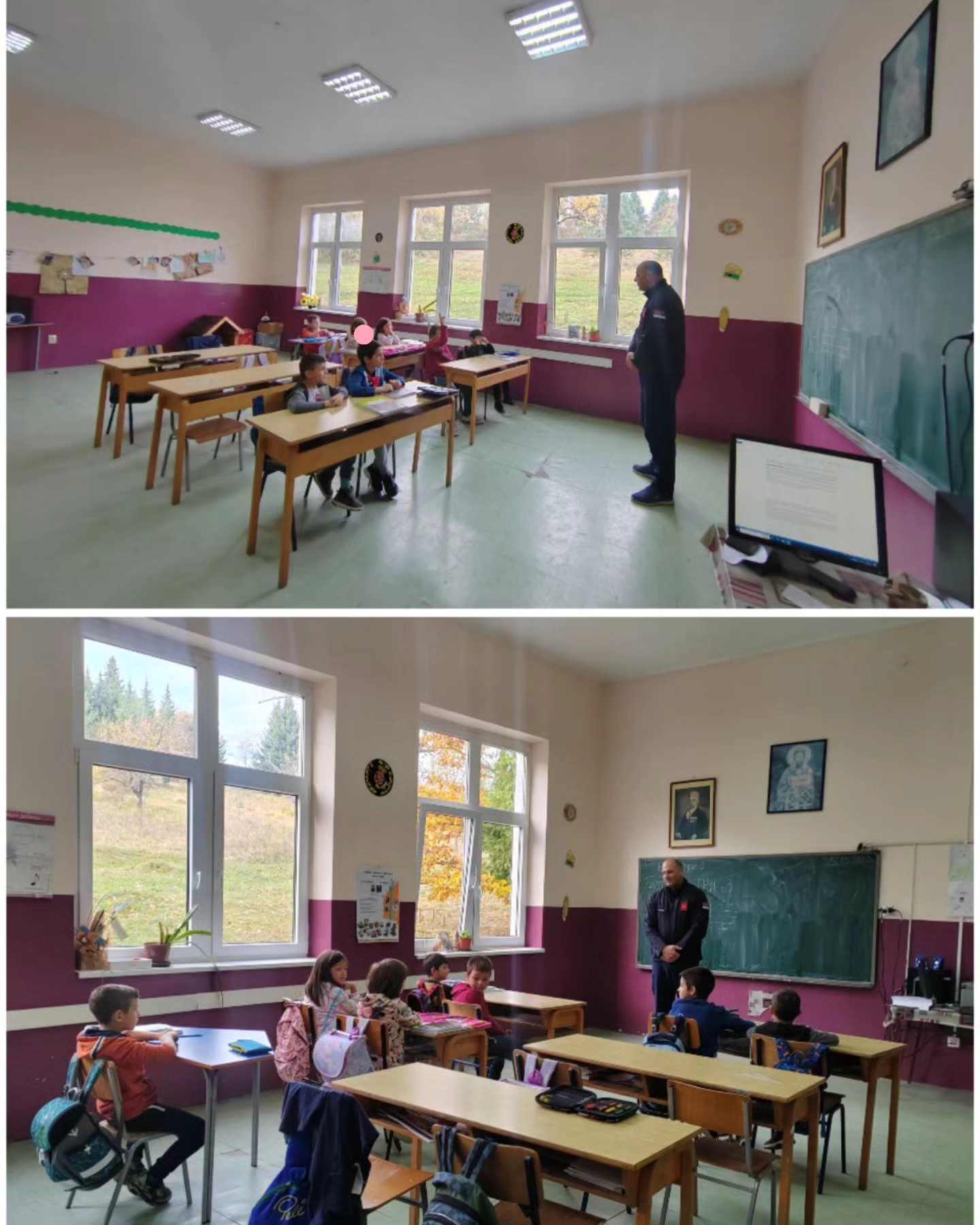 Радионица у оквиру пројекта "Заједно и безбедно кроз детињство", за ученике првог и другог разреда, реализовао Драган Токовић, ватрогасно-спасилацка бригада Мокра Гора.