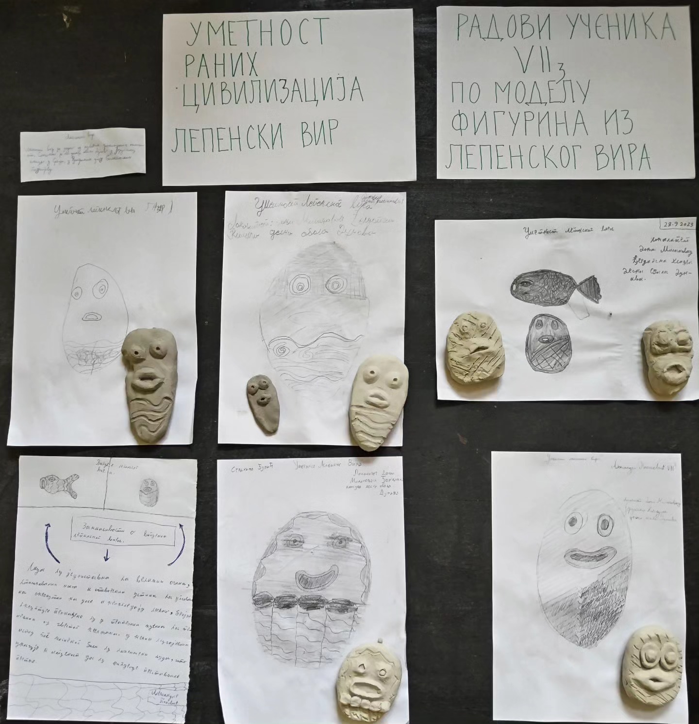 На часу СНА- Уметност, ученици 7/3 (ИО Биоска) су били пред изазовом да по моделу фигурина из Лепенског вира, извајају фигуре од глине, наравно у мањој размери (оригиналне фигуре су висине око 1 метра).