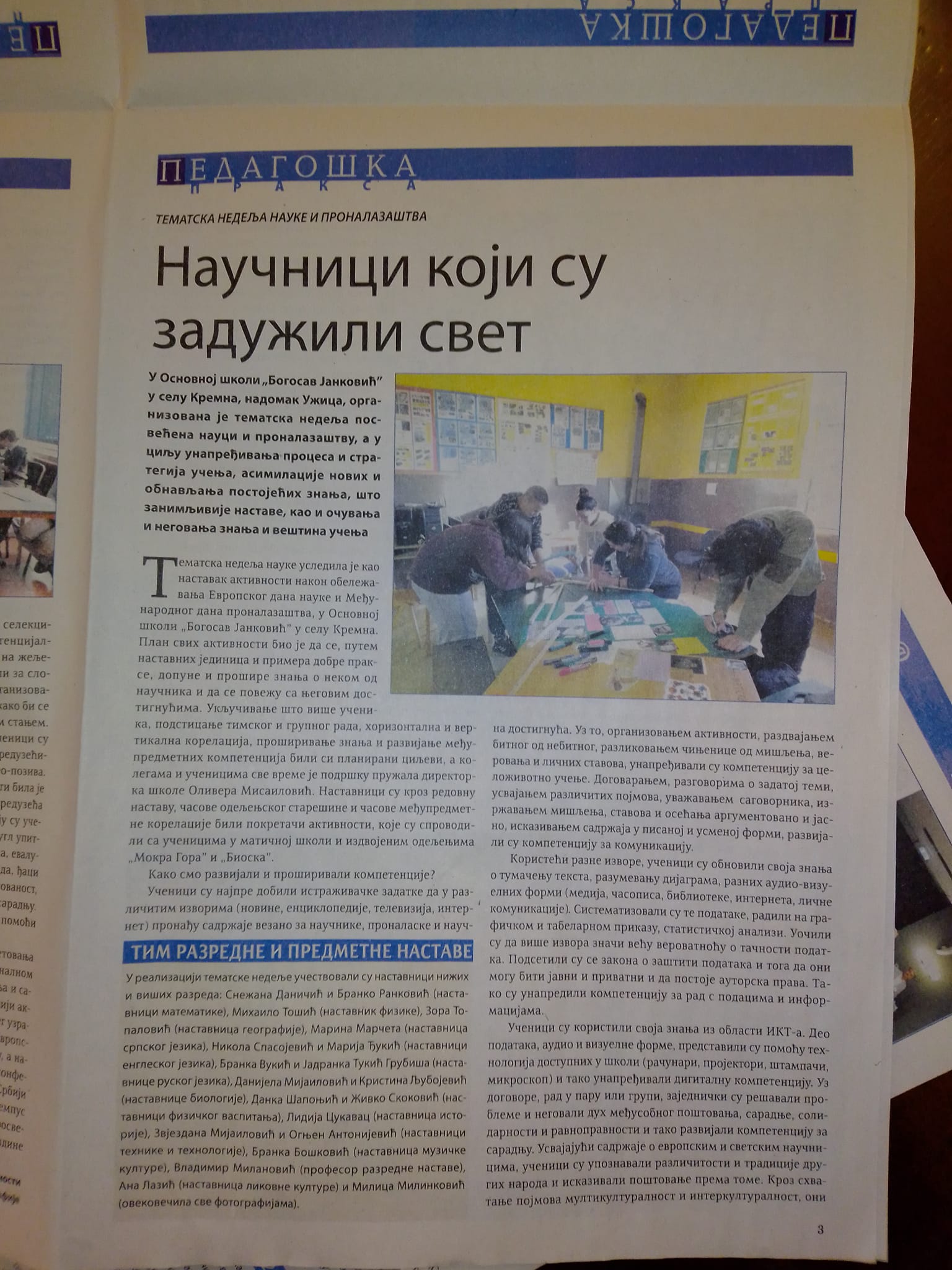 У матичној школи у Кремнима је 1. Децембра одржана радионица под називом Escape Room, у организацији издавачке куће TheEnglish Book. Радионици су присуствовали ученици матичне школе, као и ученици ИО Мокра Гора и ИО Биоска.