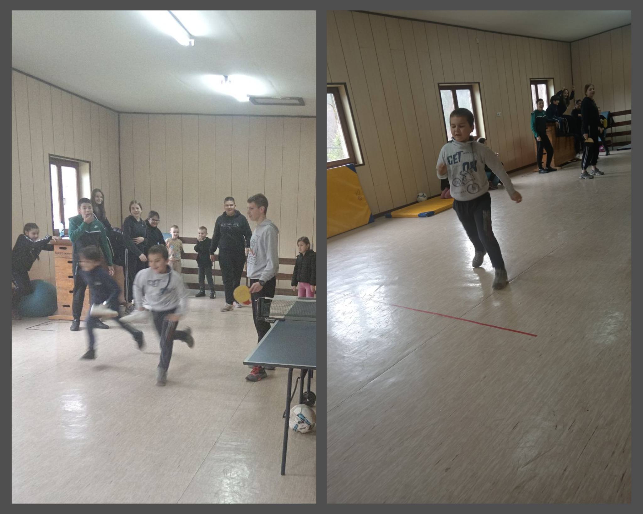 Ученици млађих разреда заједно са ученицима осмог разреда учествовали су у занимљивим играма на полигону спретности. Кроз смех, кретање и тимски рад показали су колико час физичког васпитања може бити испуњен радошћу и дружењем. Старији ученици су помагали млађима, што је додатно улепшало атмосферу и учинило овај час посебним.